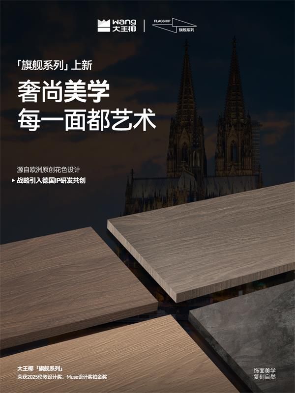 區(qū)別于普通板材的飾面印刷,旗艦系列新品源于大王椰與歐洲設(shè)計團(tuán)隊深度共創(chuàng),再現(xiàn)旗艦飾面的高級和生命張力。