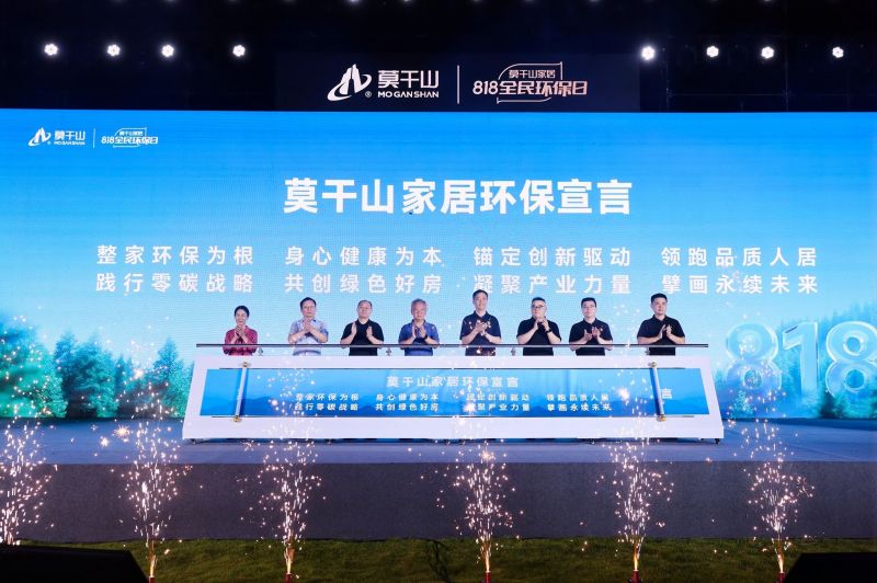 活動(dòng)高潮環(huán)節(jié),在全場(chǎng)矚目下,八位嘉賓共同開(kāi)啟莫干山家居環(huán)保宣言啟動(dòng)儀式,昭示了莫干山家居引領(lǐng)行業(yè)向更高維度環(huán)保征程邁進(jìn)的堅(jiān)定決心與責(zé)任擔(dān)當(dāng)。