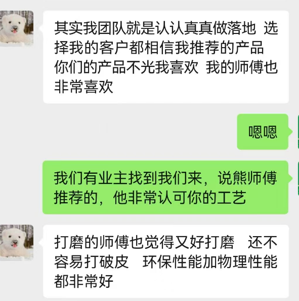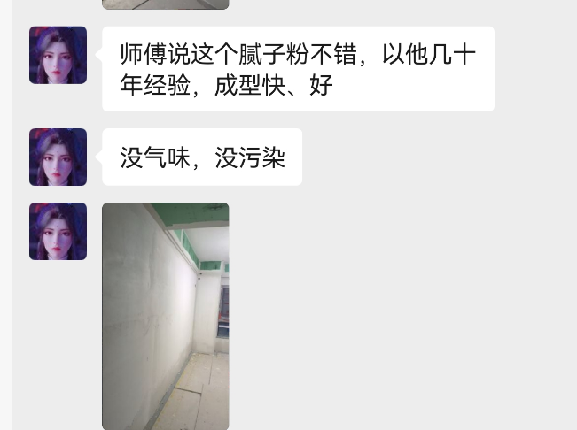 通過我購買卓瑪膩?zhàn)臃鄣臉I(yè)主,我做過一些調(diào)研,反饋都非常好,起初我還擔(dān)心南方配方到北方是否適應(yīng),但發(fā)現(xiàn)遼寧、河北、江蘇、湖南地區(qū)的業(yè)主,對產(chǎn)品評價(jià)非常高,膩?zhàn)泳准?xì)膩,沒有味道,很結(jié)實(shí),硬度好,師傅也反饋批刮爽滑,打磨不脫殼不掉皮,師傅也很喜歡用,施工效率提升,沒有客訴風(fēng)險(xiǎn),光著膀子施工都沒有問題,粉掉在身上沒有刺激性,在施工現(xiàn)場吃飯、午睡都沒問題,但一般的粉就不能這么干了。
