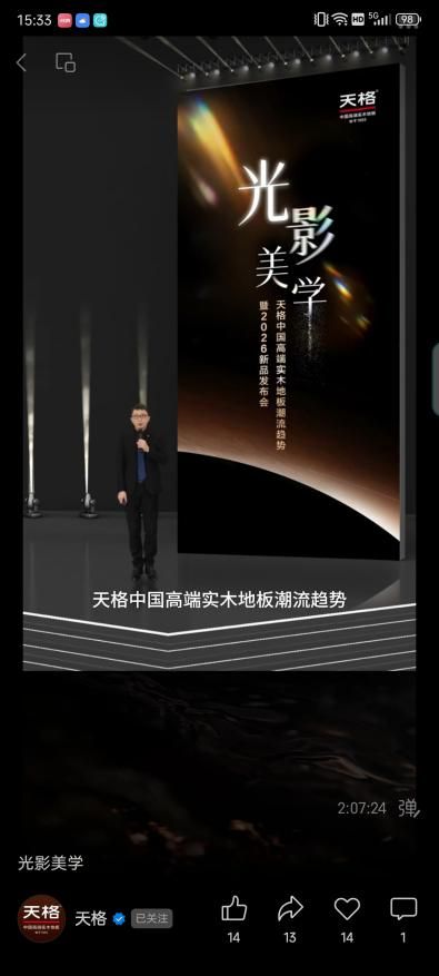 在此背景下,天格中國高端實木地板于11月26日重磅發(fā)布了多款以“光影美學”為審美內涵的全新產品,這不僅是一場品牌活動,更是一次為行業(yè)發(fā)展指明未來方向的積極探索。天格以其深厚的積淀與敏銳的用戶需求洞察,系統(tǒng)性地闡述了實木地板從“材質時代”、“功能時代”到現(xiàn)在正邁向“價值時代”的演變,這并非單一品牌的成長史,而是對整個行業(yè)發(fā)展規(guī)律的精準探索。天格以全新產品與理論體系,構建了全新的競爭維度,標志著實木地板行業(yè)開始從產品性能的競爭,升維為用戶體驗與美學價值的競爭,這也再次確立了天格在高端實木地板地面美學潮流的引領者地位。