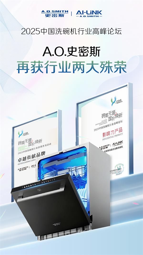 近日,廣受業(yè)界關(guān)注的“碗美無(wú)菌 國(guó)補(bǔ)煥新 2025中國(guó)洗碗機(jī)行業(yè)高峰論壇”于景德鎮(zhèn)拉開(kāi)帷幕。本屆論壇是中國(guó)洗碗機(jī)消費(fèi)普及活動(dòng)中的重要組成部分,旨在推動(dòng)行業(yè)進(jìn)一步發(fā)展。在論壇現(xiàn)場(chǎng), A.O.史密斯一舉摘得“2025中國(guó)洗碗機(jī)行業(yè)消費(fèi)普及活動(dòng)卓越貢獻(xiàn)品牌”與“2025中國(guó)洗碗機(jī)行業(yè)高峰論壇影響力產(chǎn)品(自旋式潔霸洗碗機(jī))”兩項(xiàng)業(yè)界殊榮。這不僅是對(duì)A.O.史密斯廚電產(chǎn)品創(chuàng)新力的認(rèn)可,也是對(duì)A.O.史密斯引領(lǐng)廚電行業(yè)發(fā)展貢獻(xiàn)的高度肯定。
