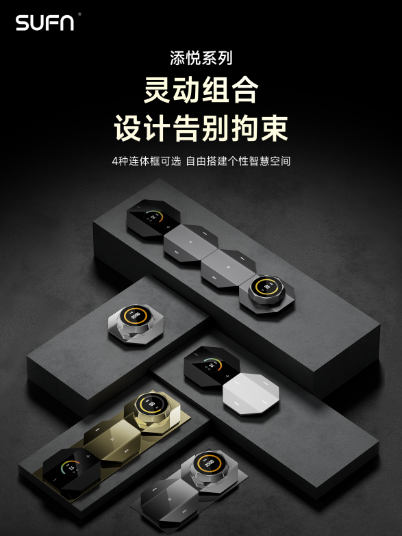 模塊化自由組合設計——添悅系列產品提供四種連體框結構,用戶可根據實際使用場景自由搭建個性化智慧空間,實現(xiàn)從功能性工具向空間藝術品的轉化。模塊化設計理念=提高了產品適用性,也體現(xiàn)對用戶個性化需求的深度理解。