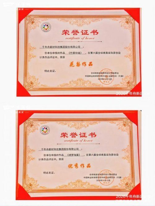 第六屆全球表面裝飾原創(chuàng)設(shè)計(jì)秀、原創(chuàng)設(shè)計(jì)創(chuàng)意分享會(huì)率先點(diǎn)燃熱潮。千年舟集團(tuán)憑借對(duì)市場(chǎng)趨勢(shì)的精準(zhǔn)把握與原創(chuàng)設(shè)計(jì)的深厚積淀,“竹翠玲瓏”、“繡夢(mèng)海棠”花色在眾多參賽作品中脫穎而出,成功斬獲榮譽(yù)。