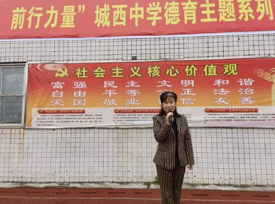 11月1日,德育主題系列活動(dòng)之“青春無悔”在城西中學(xué)運(yùn)動(dòng)場(chǎng)上如期召開。四川省第六屆道德模范劉春香受邀到校宣講。